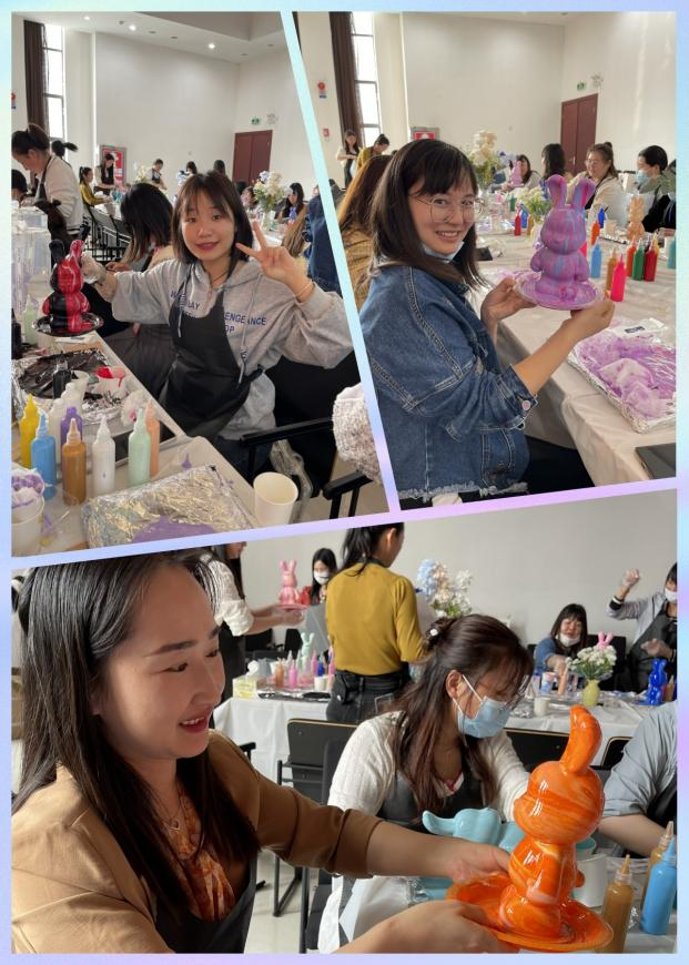 活动还进行了流体兔制作。在手工老����� �������Ƴ������������ �������Ƴ����������� �������Ƴ������������ �������Ƴ�������师讲解了流体兔材料、制作方法和����� �������Ƴ������������ �������Ƴ������������ �������Ƴ������������ �������Ƴ�������注意事项后,大家便按照自己的喜好开始创作。大家互����� �������Ƴ������������ �������Ƴ����������� �������Ƴ������������ �������Ƴ������相讨论和共同协作,将调好的颜����� �������Ƴ������������ �������Ƴ������������ �������Ƴ������������ �������Ƴ�������料淋到白模小兔子身上,淋不到的位置����� �������Ƴ������������ �������Ƴ������������ �������Ƴ����������� �������Ƴ�������细心涂抹,不同色块自由相撞、自然形成的花纹随����� �������Ƴ������������ �������Ƴ������������ �������Ƴ������������ �������Ƴ�������着制作过程不断变化。经过近一个小时的创作,一个个����� �������Ƴ������������ �������Ƴ����������� �������Ƴ������������ �������Ƴ������独一无二的小兔子展现在大家面前。